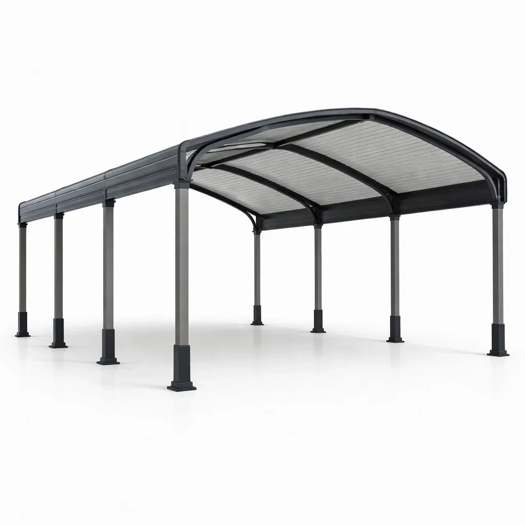 Abri voiture en métal et polycarbonate gris 600 x 300 x 260 cm