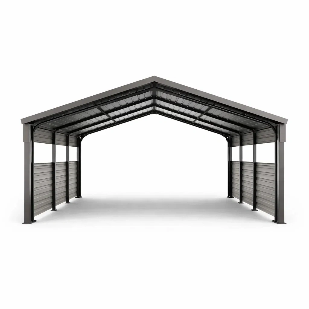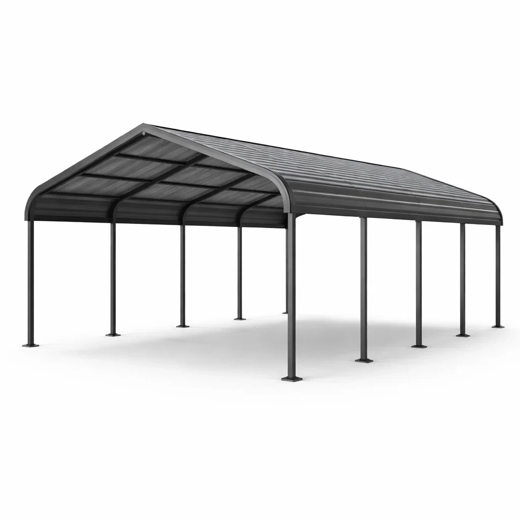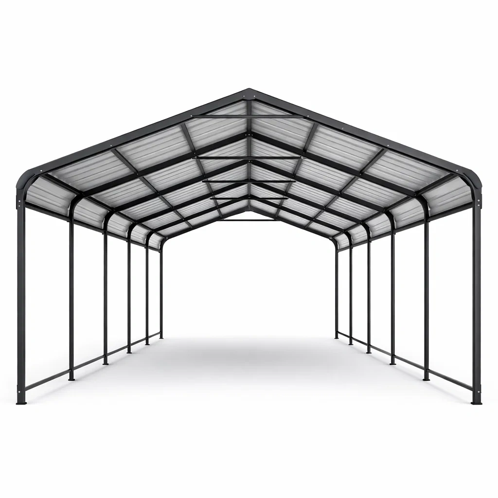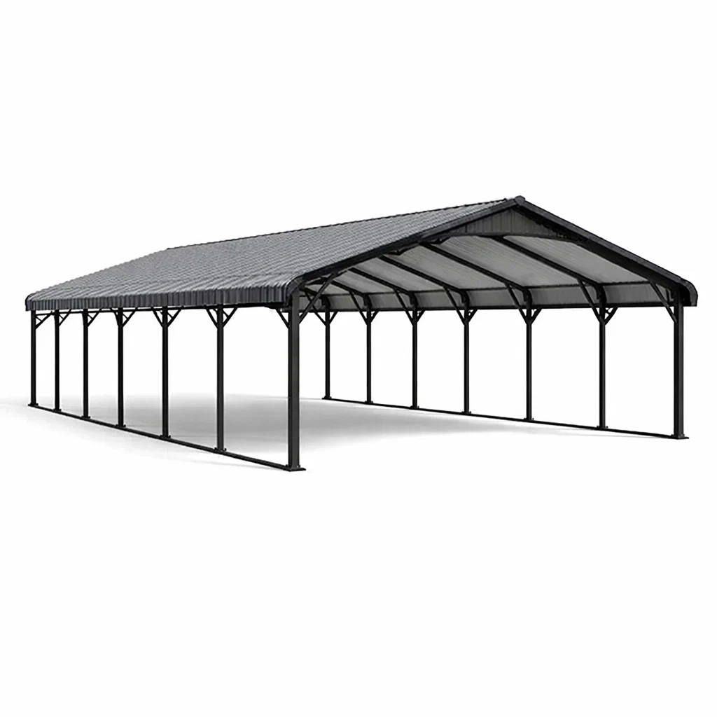 Abri voiture en métal galvanisé noir 6 x 3 x 2.4 m