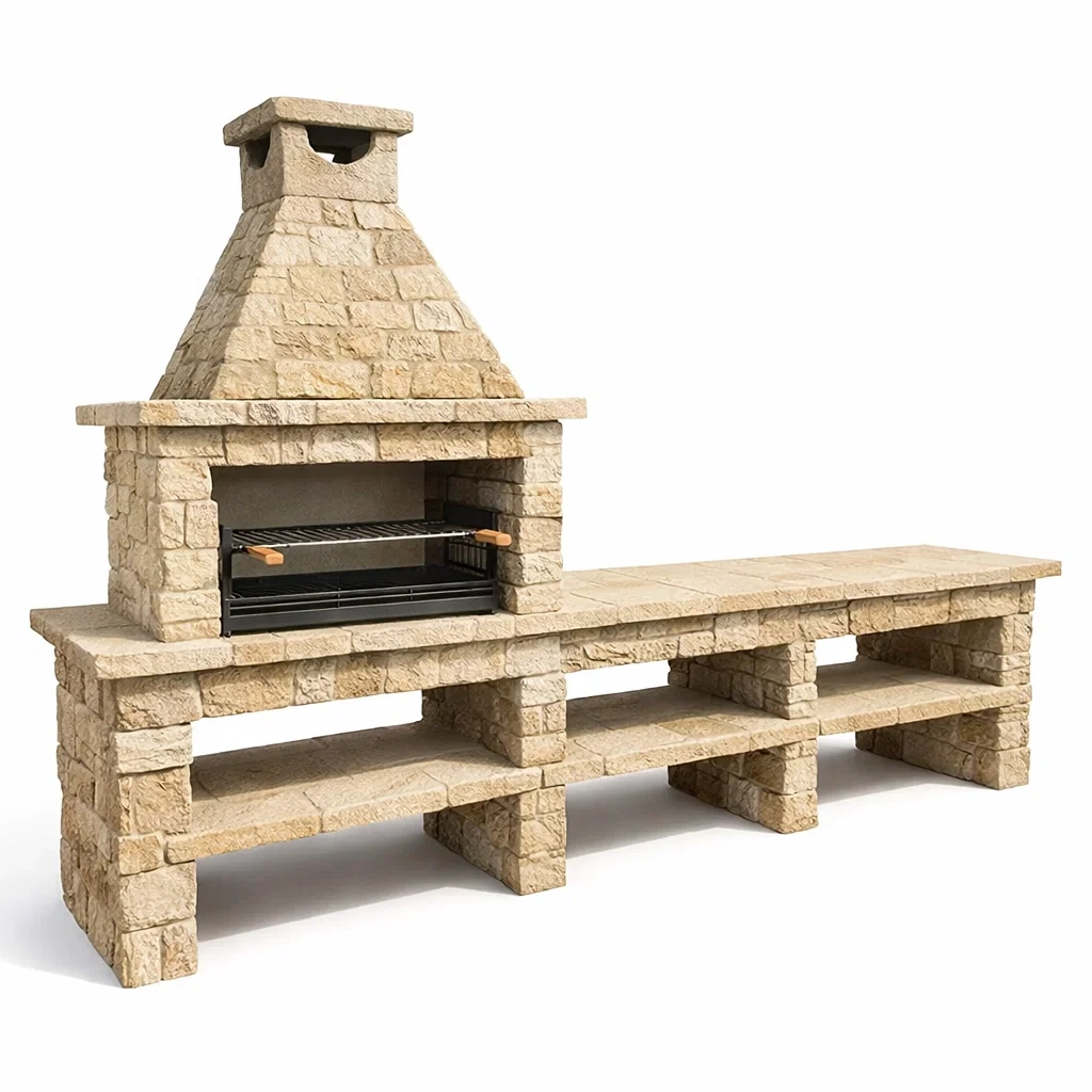 Composants : Structure en pierre calcaire avec grill en acier inoxydable