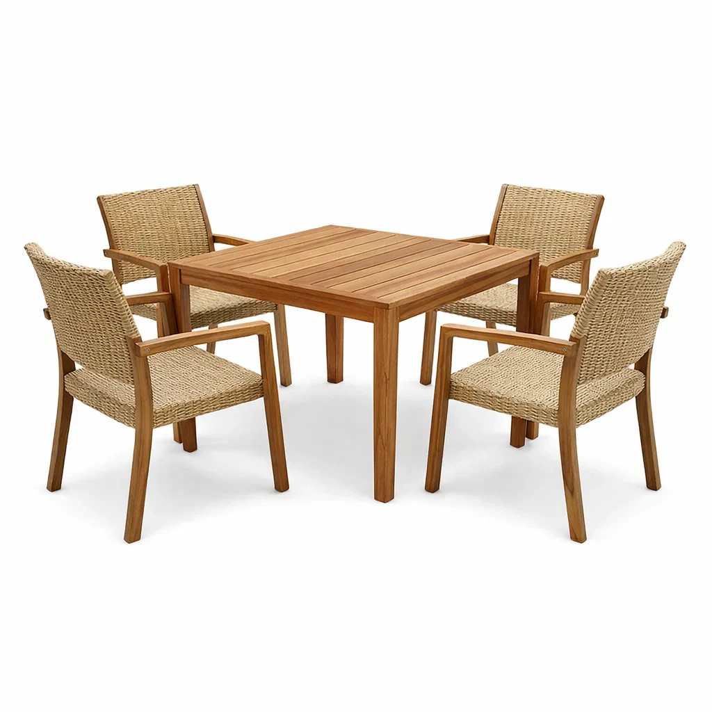Matériau : Table en teck, chaises en polyéthylène tressé