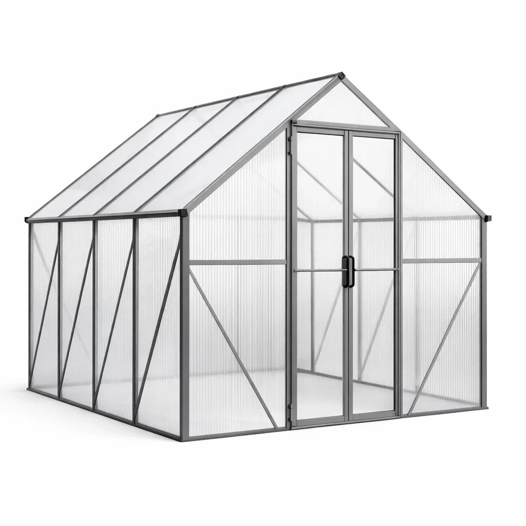Matériau : Structure en aluminium, panneaux en polycarbonate alvéolaire de 4 mm